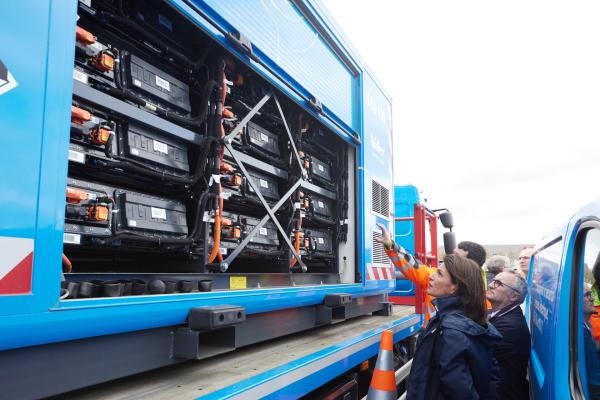 Enedis met à disposition un Groupe Électrogène Zéro Émission (GEZE) pour alimenter l’écran géant de l’arrivée à Vertou et réalise un audit énergétique complet des besoins en puissance d’une étape afin d'ajuster les consommations.