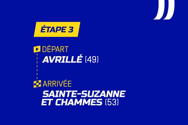 Étape reine de ce triptyque avec près de 196 km et un relief usant. Après Avrillé, la course remonte vers la Mayenne par un enchaînement de routes vallonnées via Évron et les Coëvrons. Les ascensions courtes mais répétées érodent les organismes. Le circuit final, parcouru deux fois à Sainte-Suzanne, cité médiévale perchée, offre un terrain idéal aux puncheurs. Distance et profil accidenté pourraient déjà marquer le classement général.