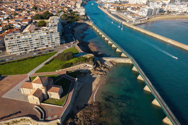 Ville balnéaire emblématique, Les Sables-d’Olonne est célèbre pour la course à la voile Vendée Globe (prochain départ en novembre 2028). Son vieux quartier de pêcheurs, La Chaume, est dominé par la tour d’Arundel, vestige du château du XIIᵉ siècle, et l’esplanade du Prieuré Saint Nicolas. Le musée de l’Abbaye de Sainte-Croix présente quant à lui d’importantes collections d’art contemporain, tandis que la Villa Charlotte et son parc témoignent de l’élégance balnéaire du Second Empire et de la Belle Époque.